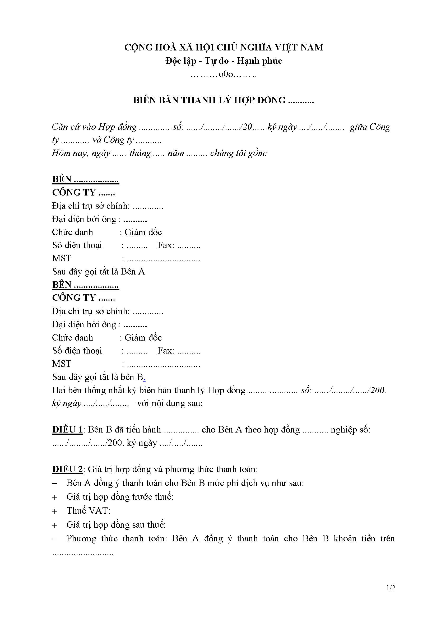 Mẫu Biên Bản Thanh Lý Hợp Đồng Mới Nhất
