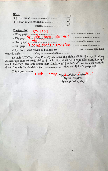 Mẫu đơn xác nhận tình trạng BDS