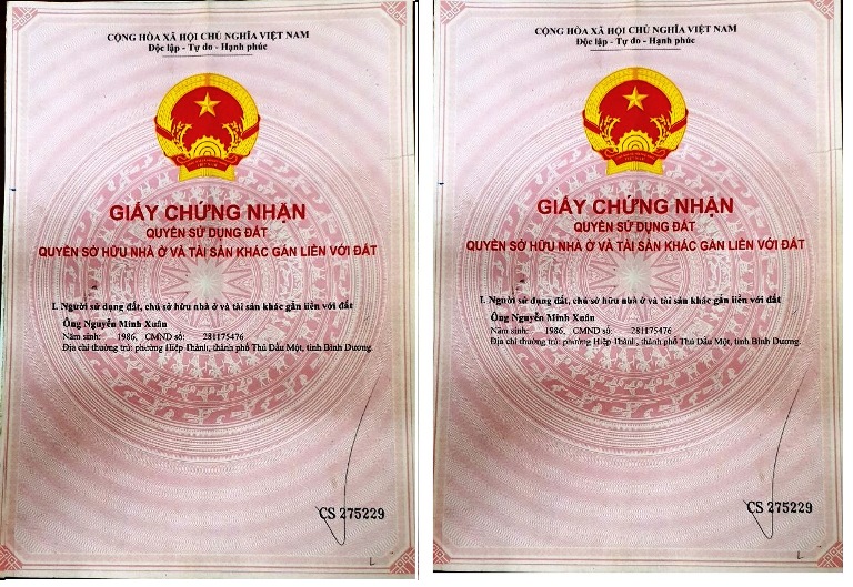 2. Giấy chứng nhận quyền sở hữu nhà ở và đất ở(bản gốc).
