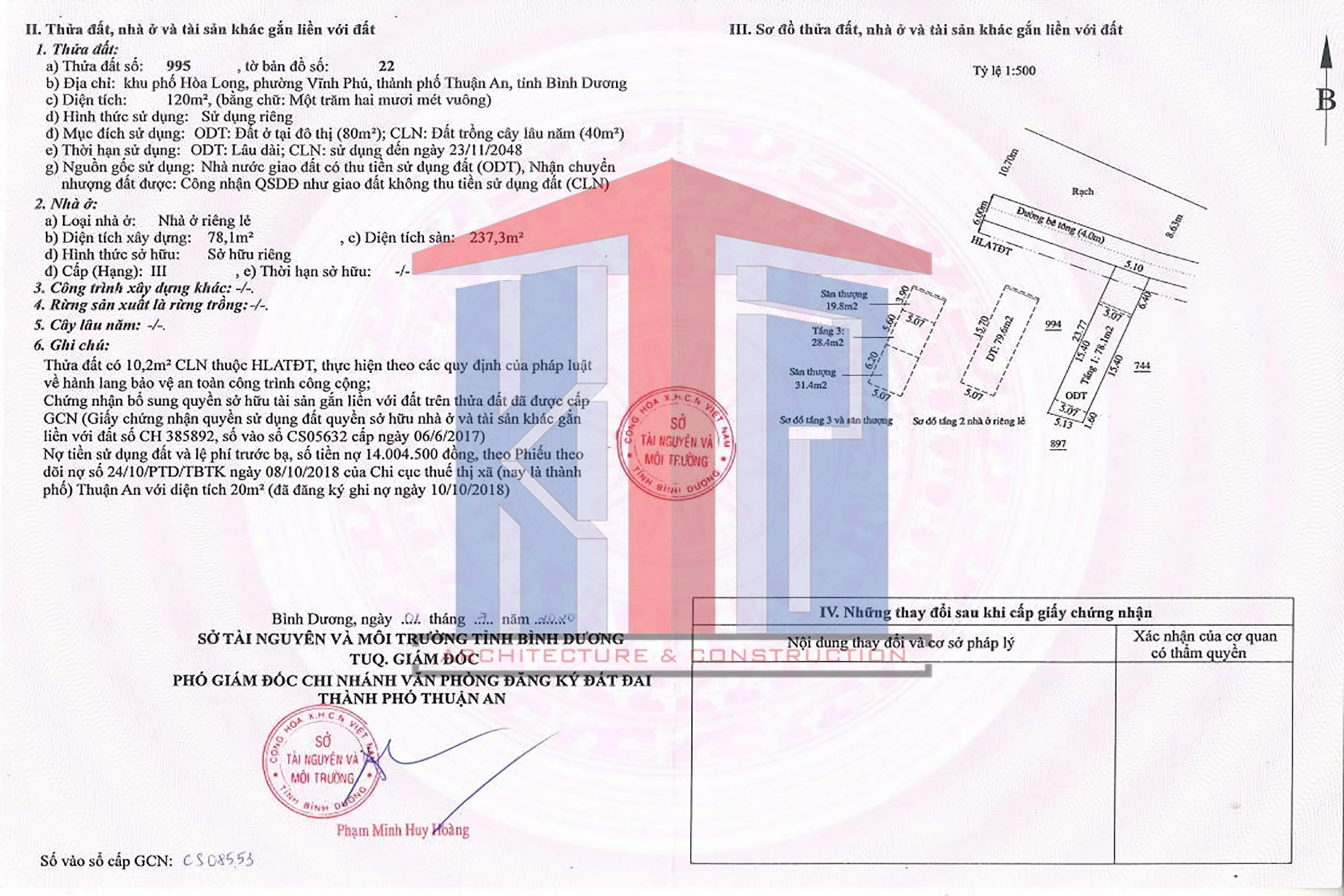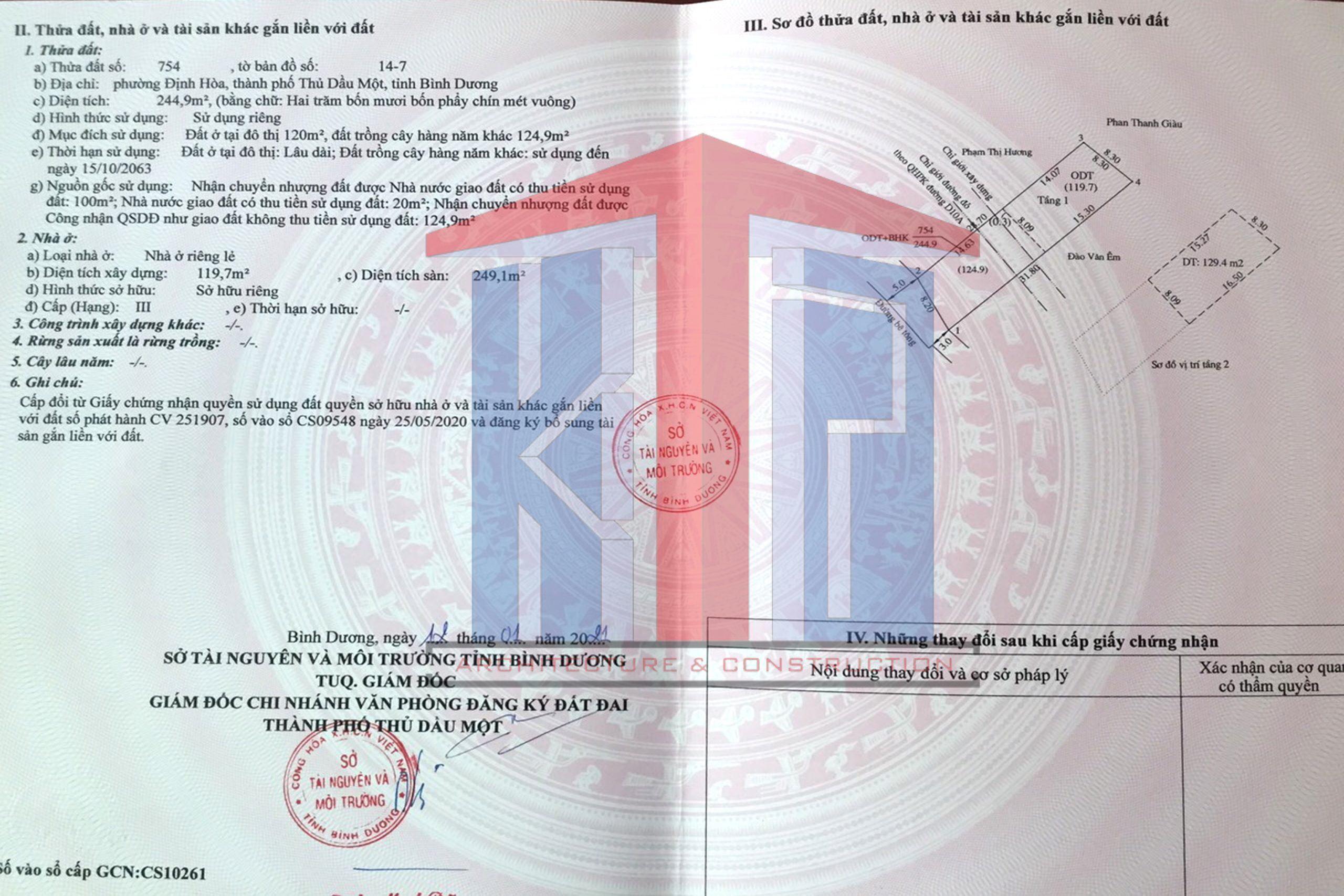 Bảng giá Hoàn công nhà ở Bình Dương: