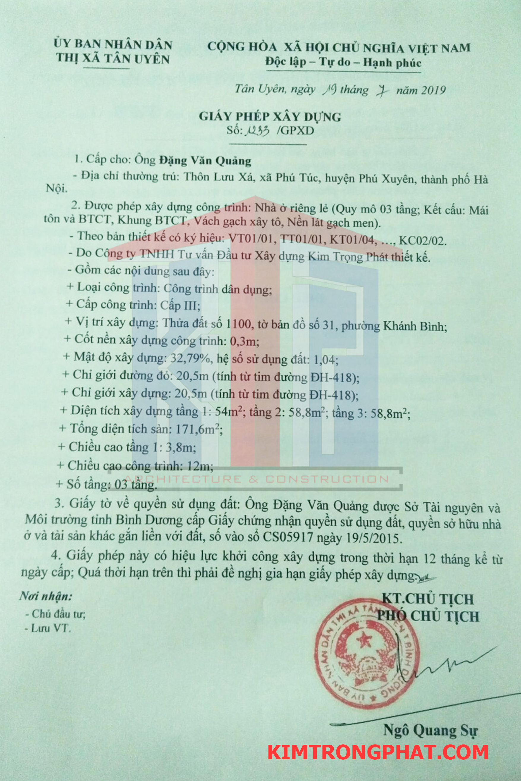 Liên Hệ : Công Ty TNHH Tư Vấn Đầu Tư Xây Dựng Kim Trọng Phát