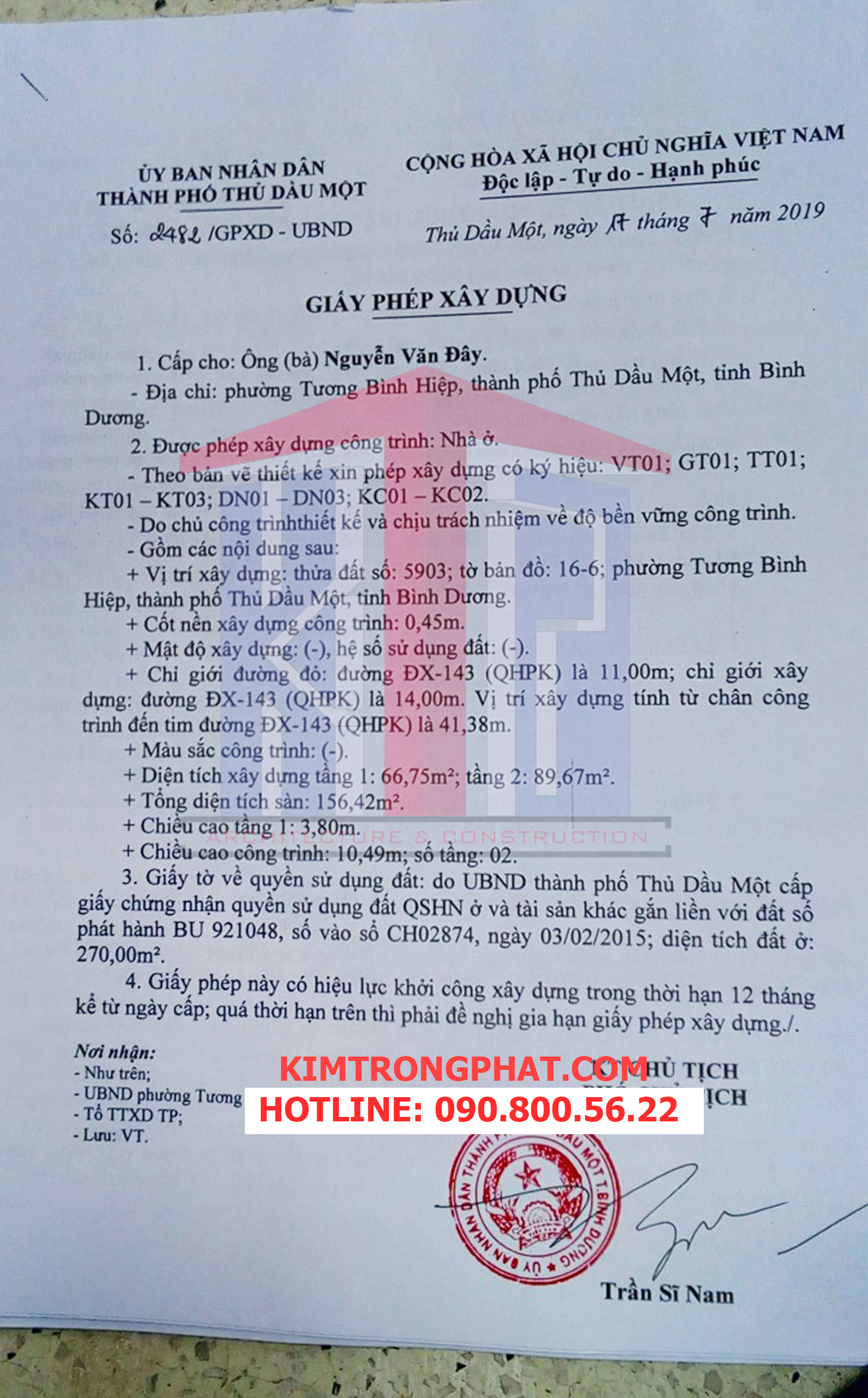Thời gian nhận giấy phép xây dựng tại Bình Dương chỉ mất từ 10-15 ngày làm việc với một chi phí cực rẻ đến bất ngờ.