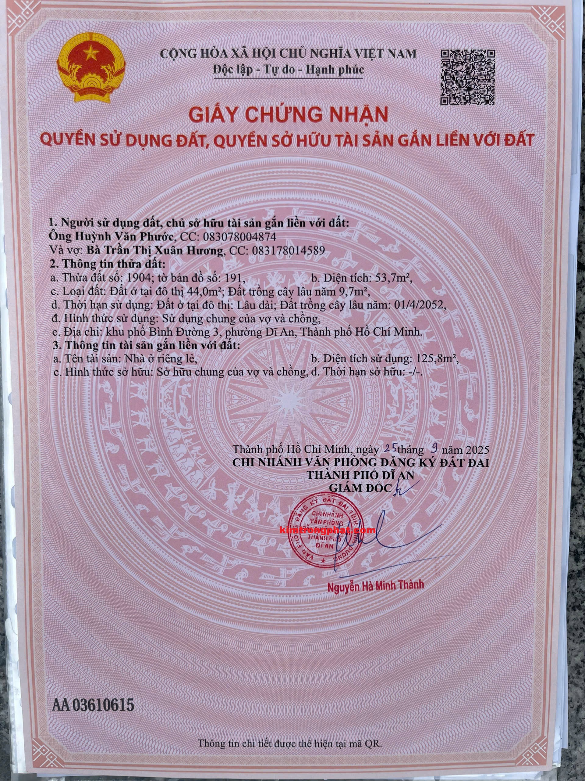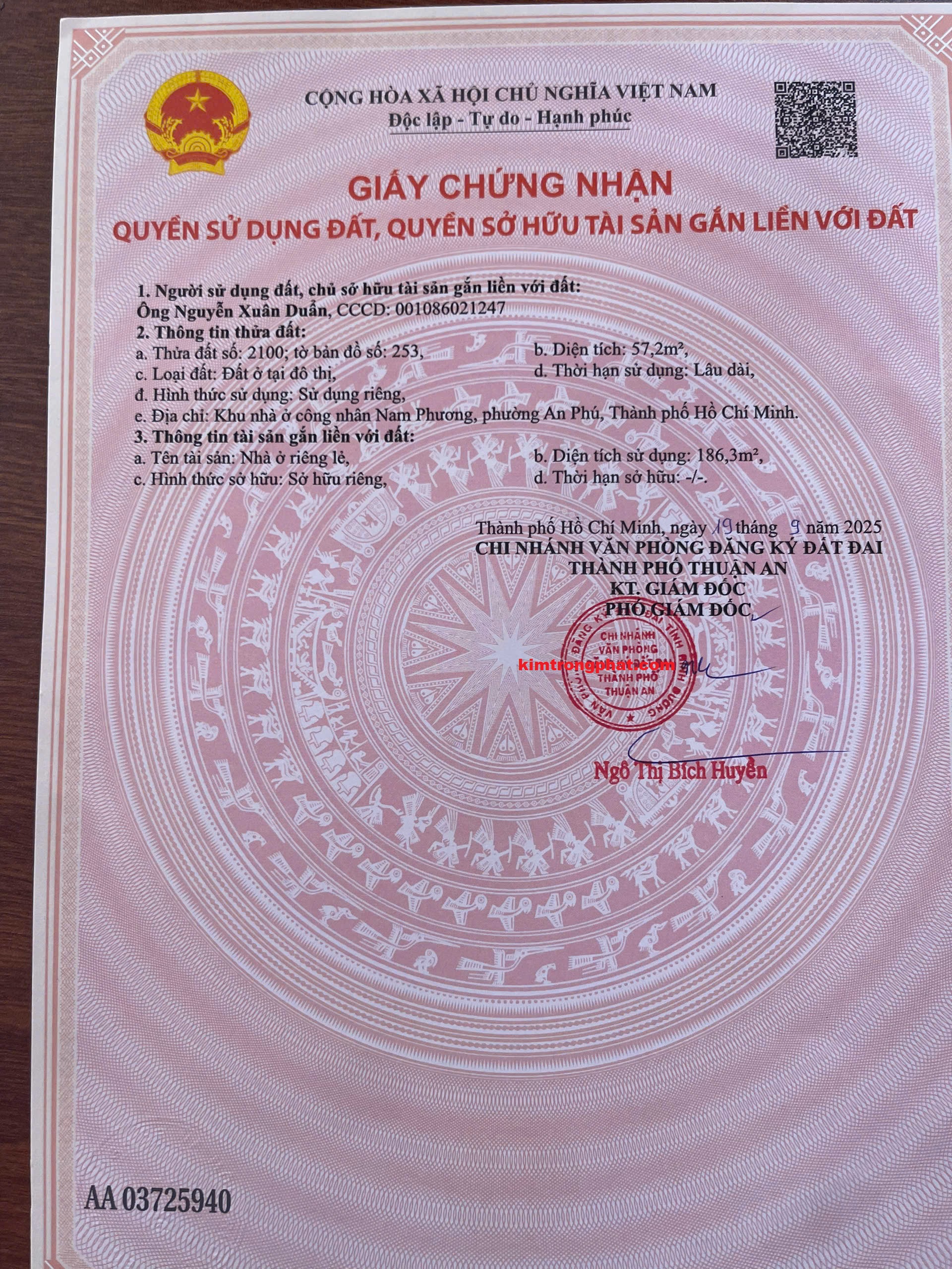 Sổ đỏ/sổ hồng, CMND/CCCD của chủ sở hữu.
