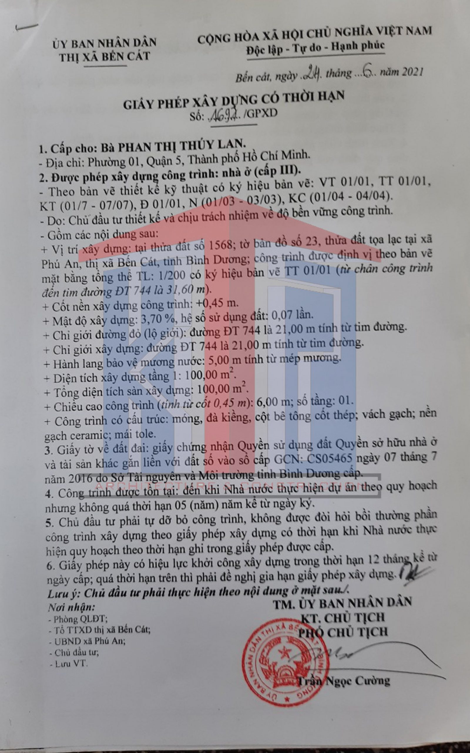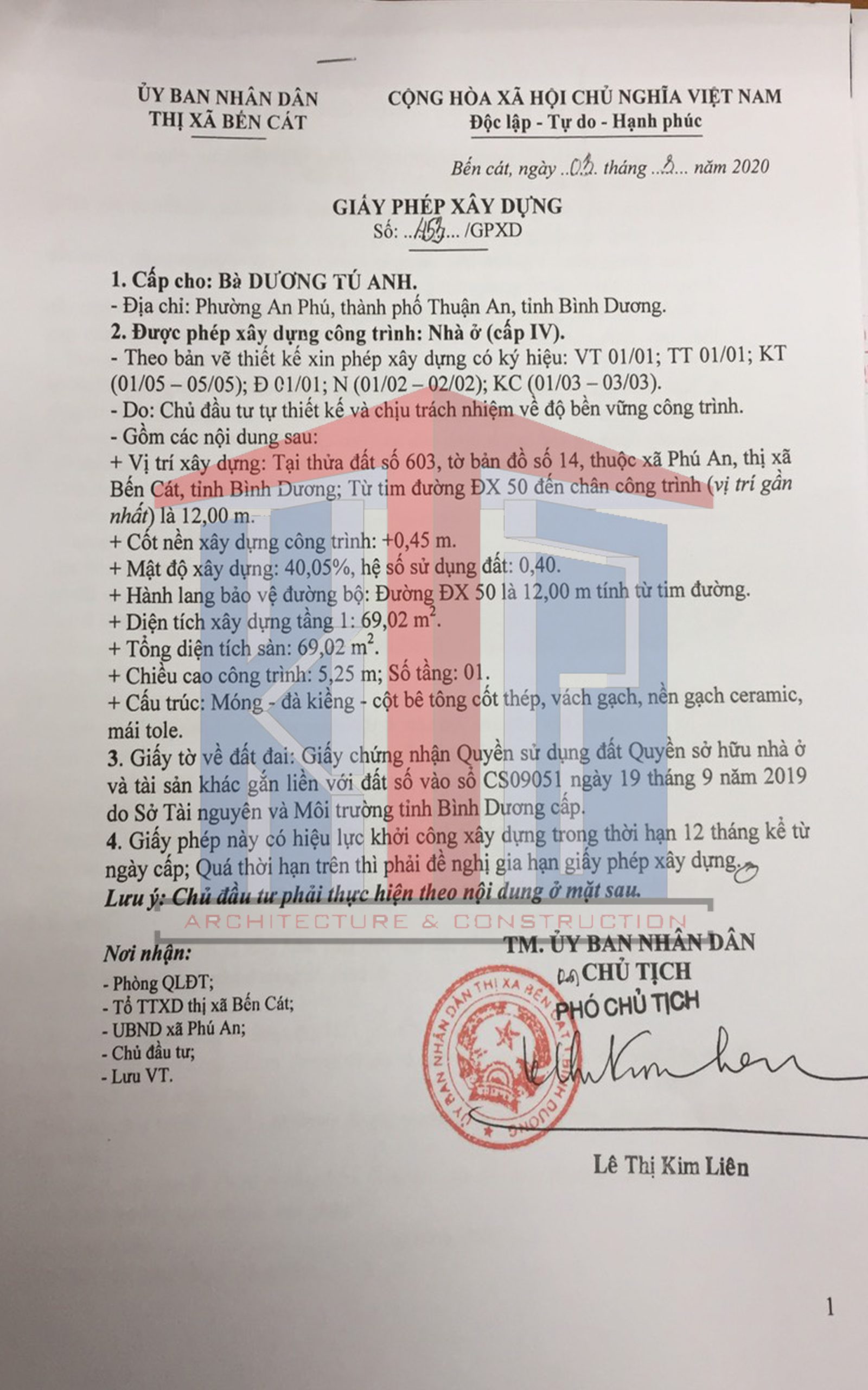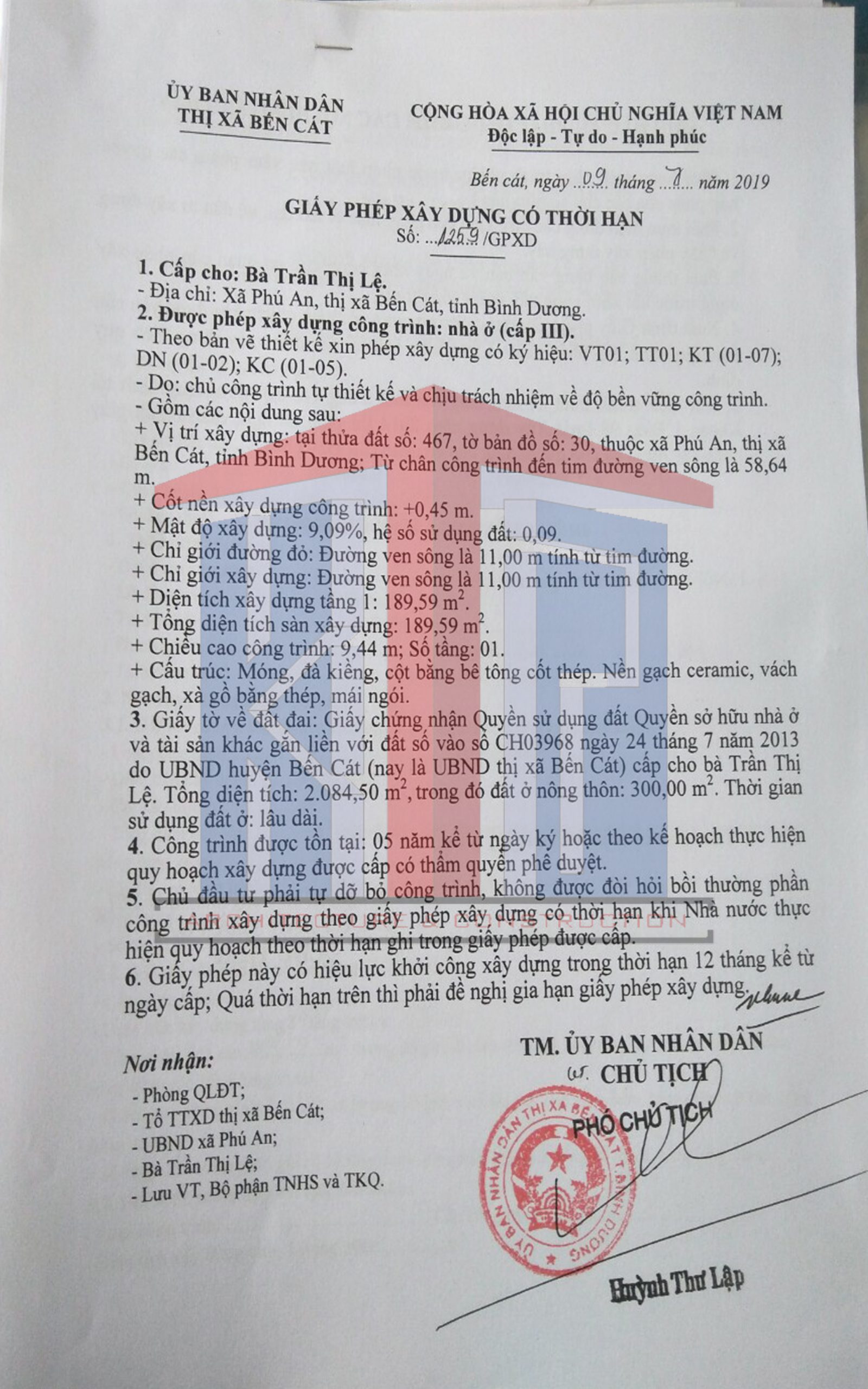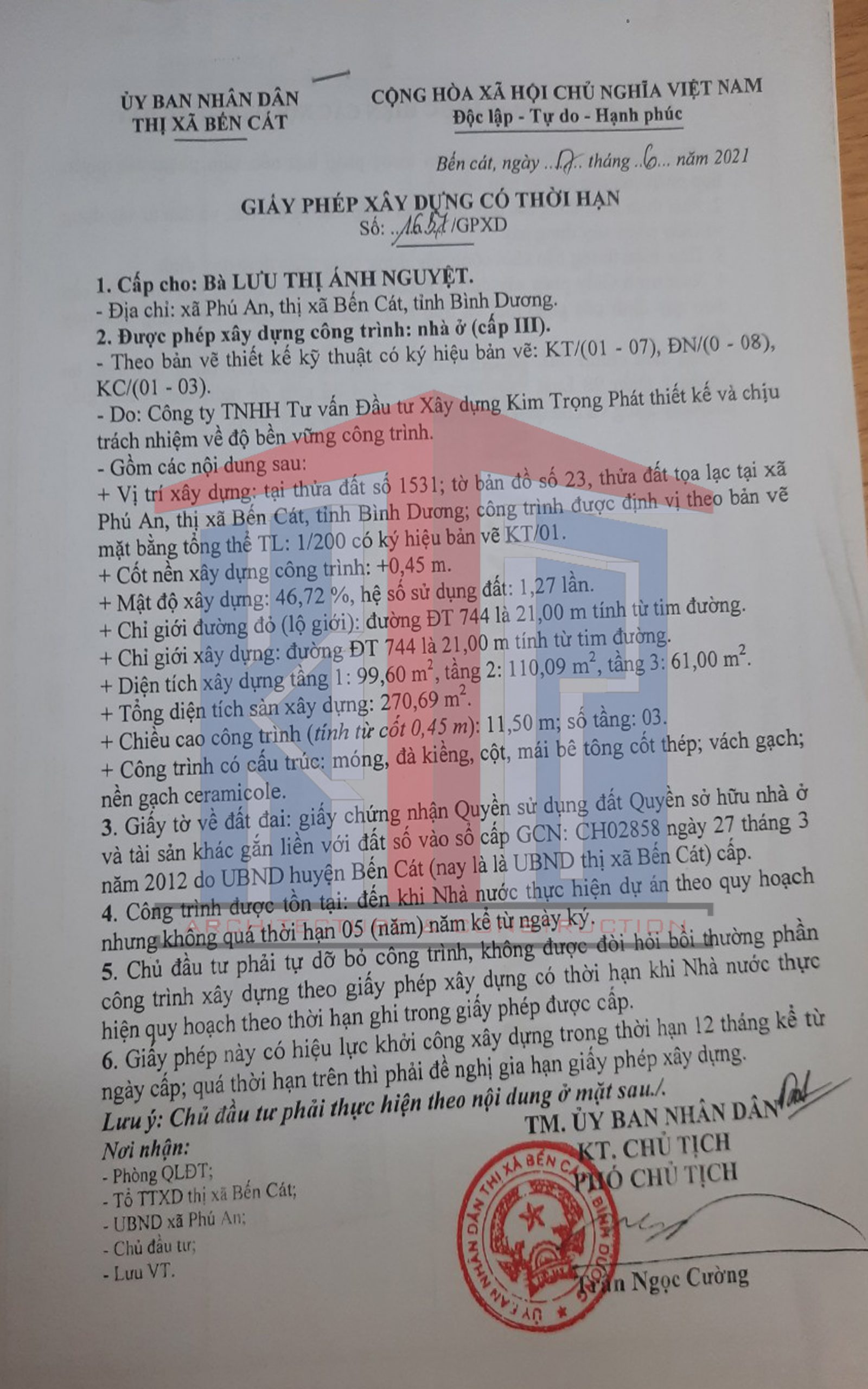 Một số hồ sơ xin giấy phép xây dựng Phú An Bến Cát: