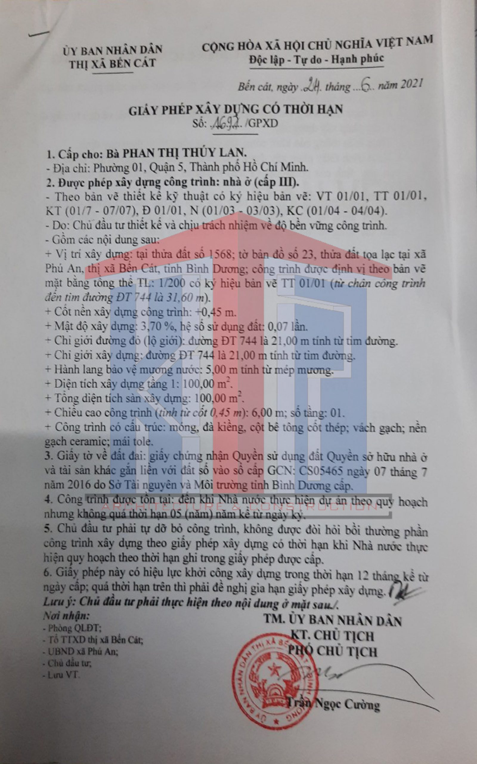 Hồ sơ xin giấy phép xây dựng Phú An Bến Cát Bình Dương: