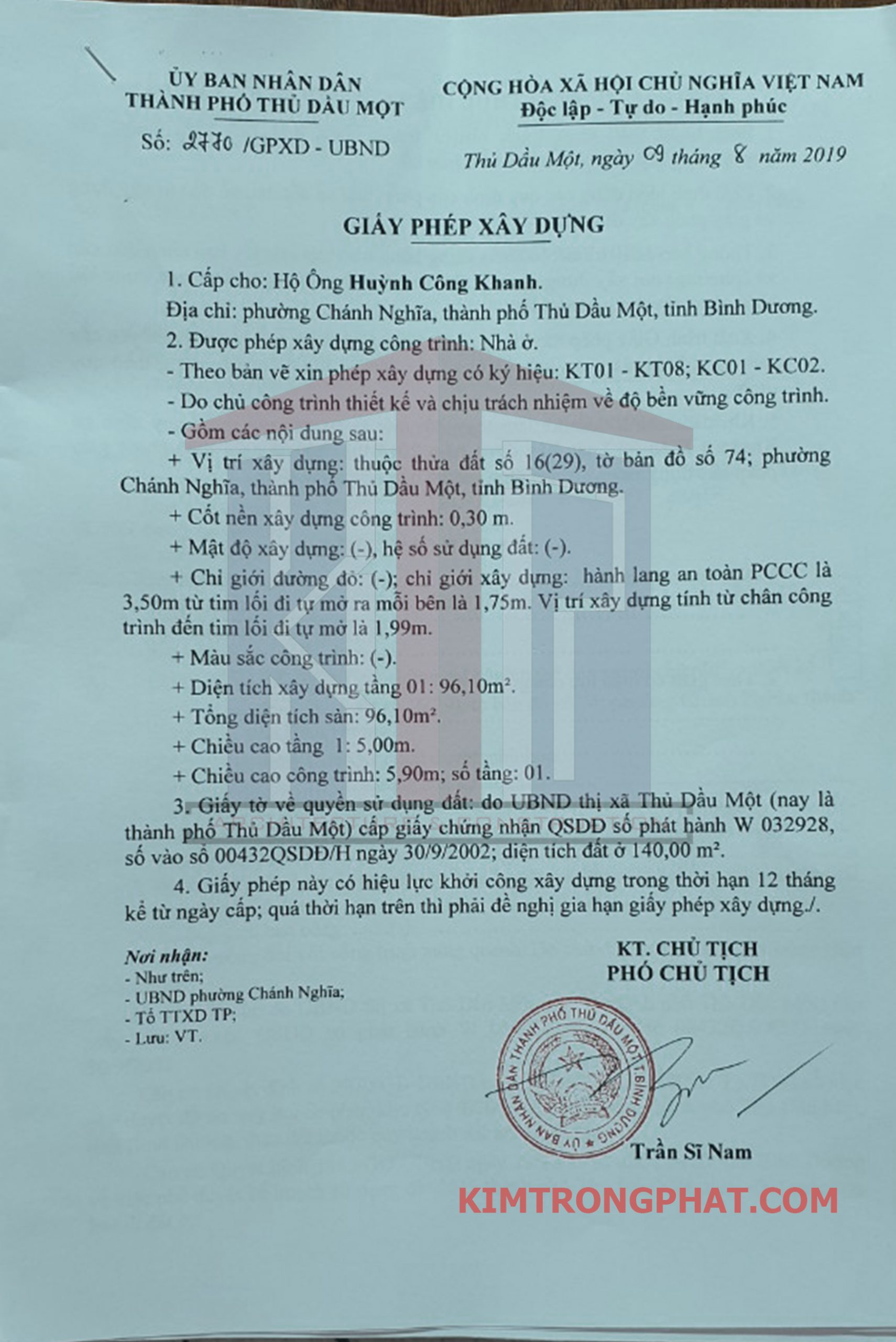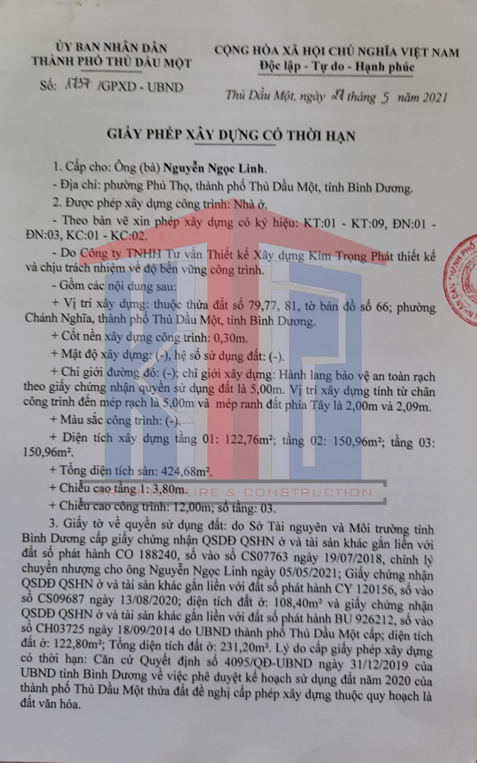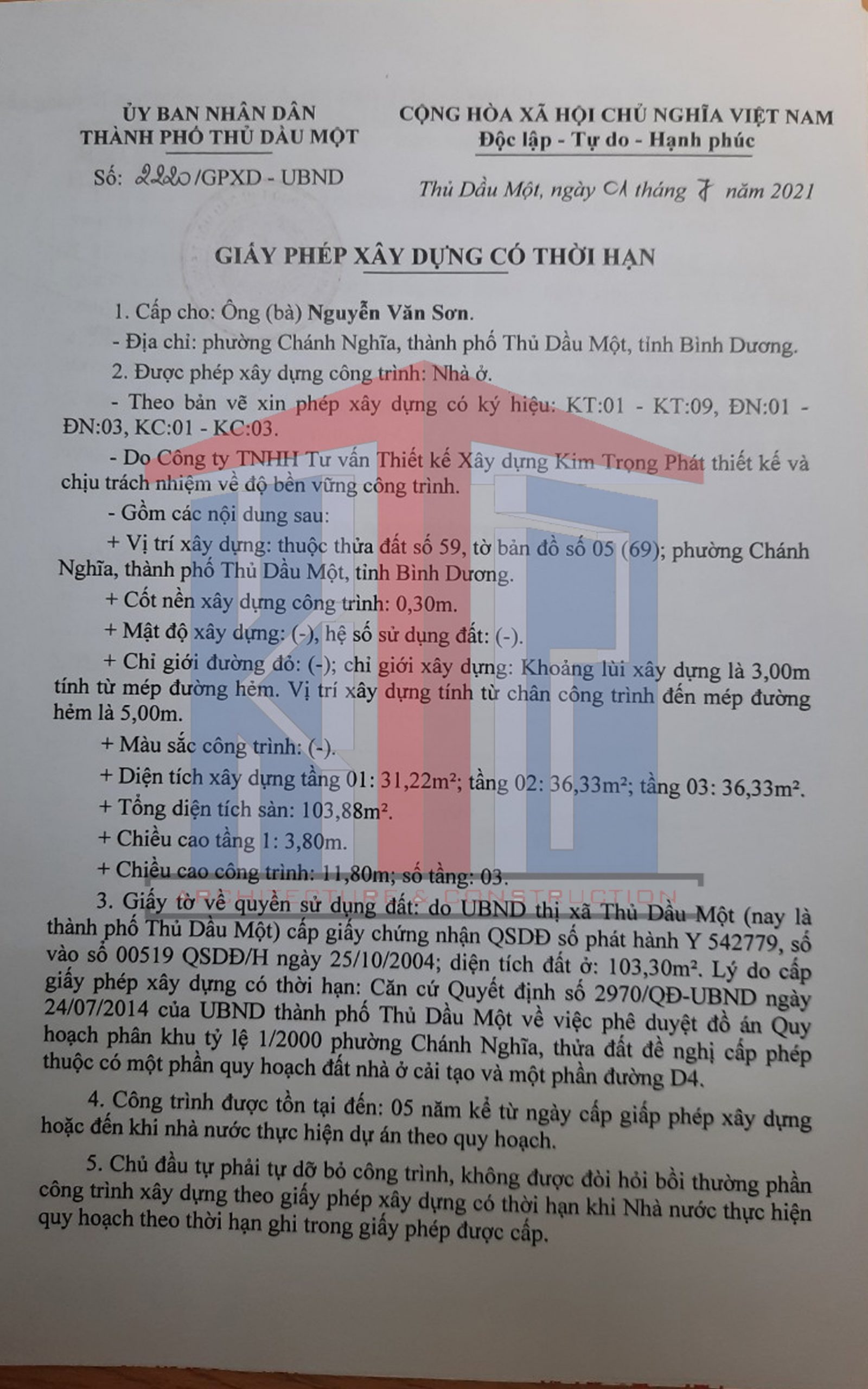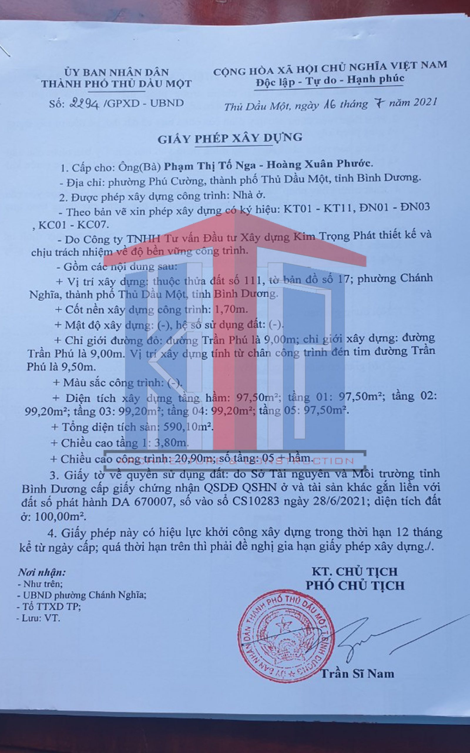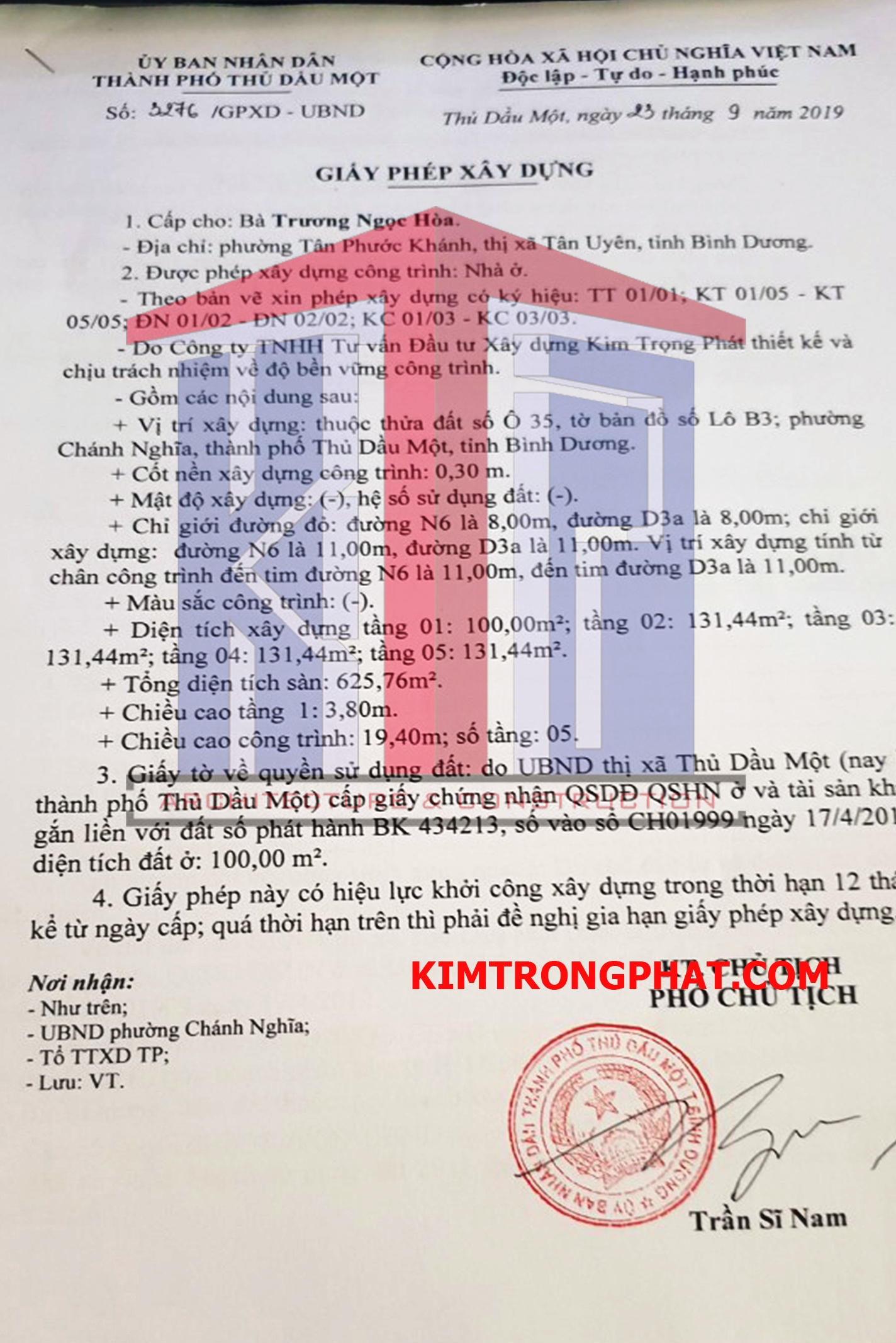 Dịch vụ xin giấy phép xây dựng nhanh nhất khu vực Chánh Nghĩa, Thủ Dầu Một của Kim Trọng Phát: