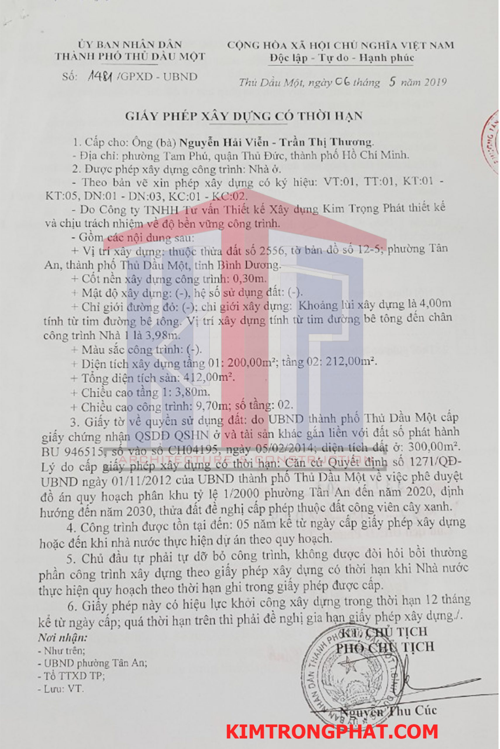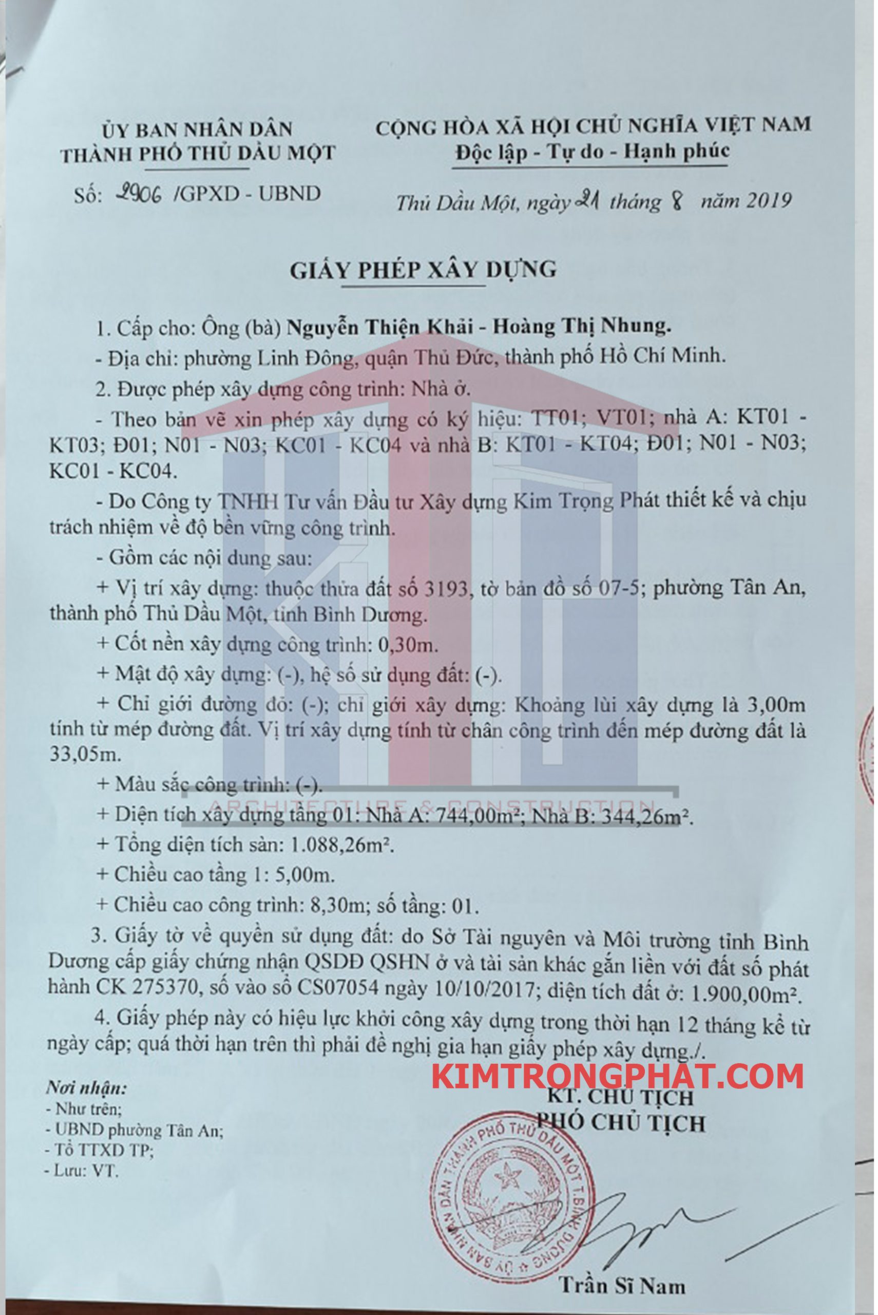 Dịch vụ xin giấy phép xây dựng nhanh nhất khu vực Tân An, Thủ Dầu Một của Kim Trọng Phát: