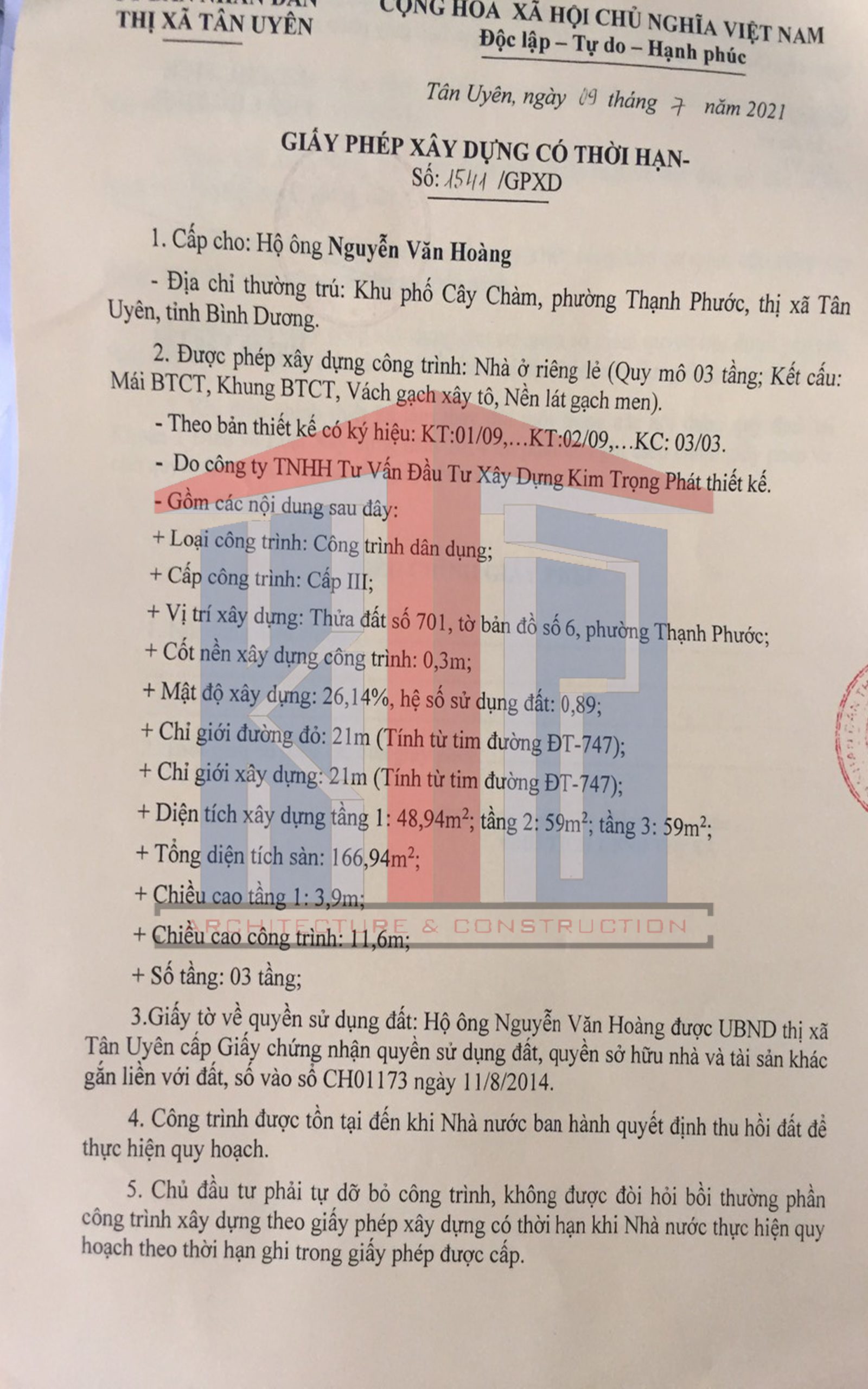 Dịch vụ xin giấy phép xây dựng nhanh nhất khu vực Tân Hiệp Tân Uyên của Kim Trọng Phát: