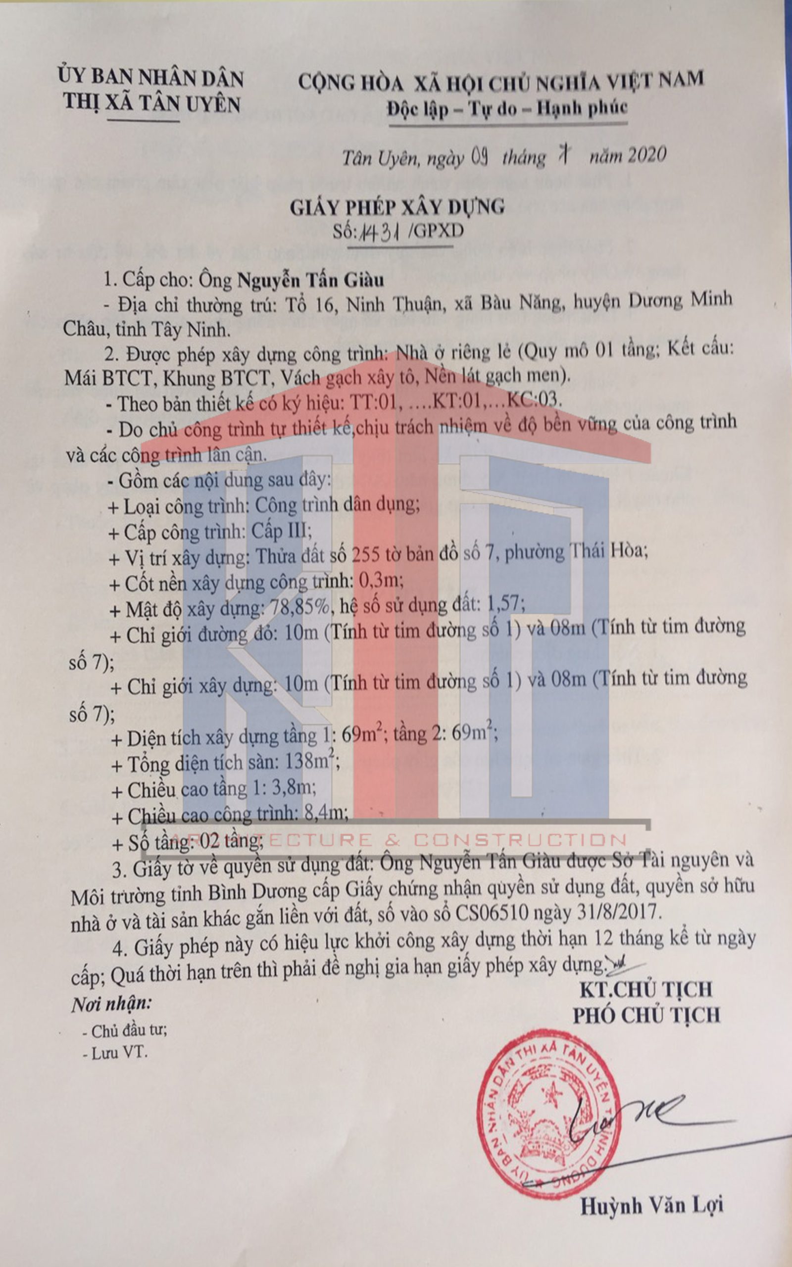 Mời quý khách tham khảo thêm: Dịch vụ xin giấy phép xây dựng tại Tân Uyên.