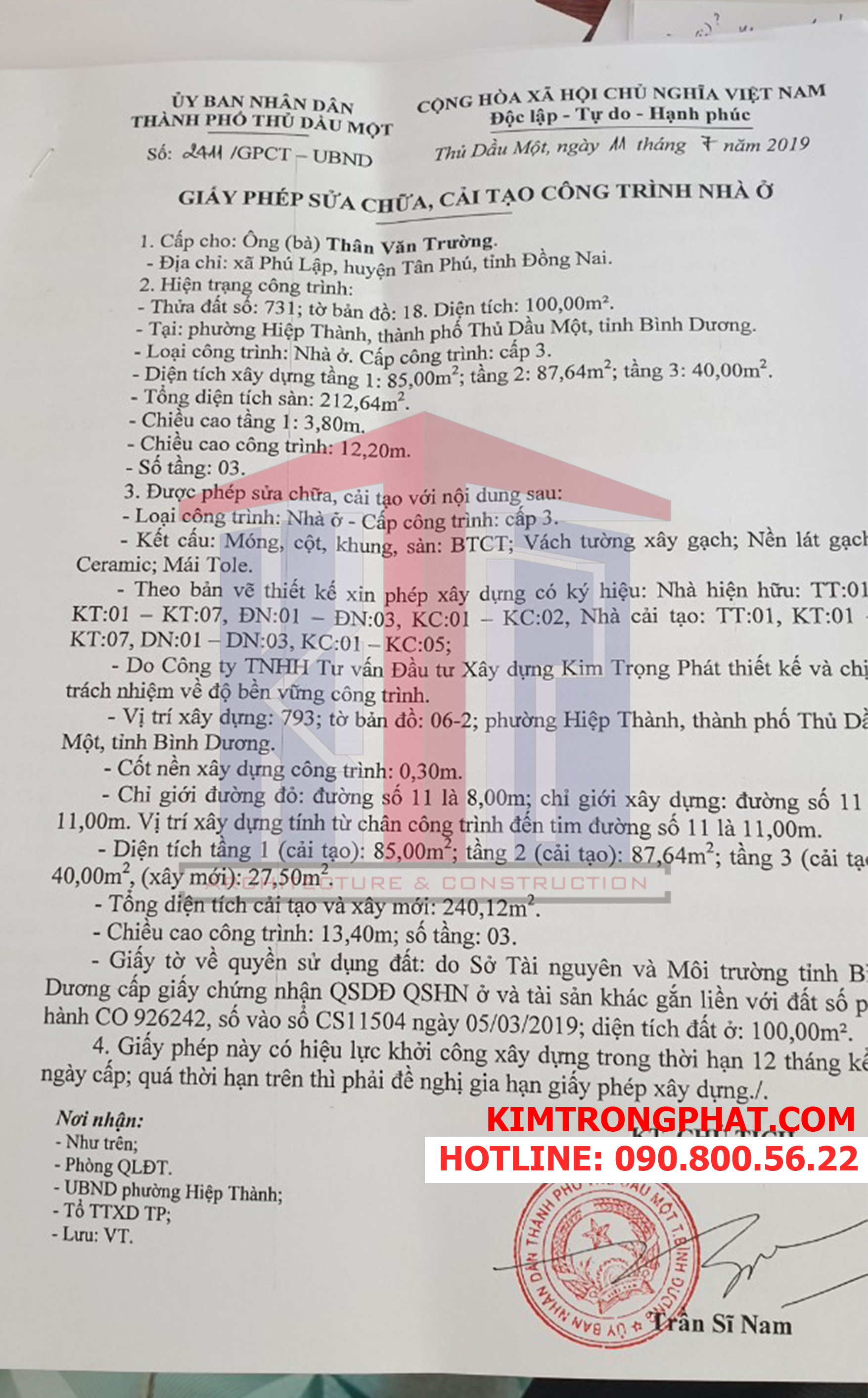 Giấy phép xây dựng cải tạo, sửa chữa Bình Dương :