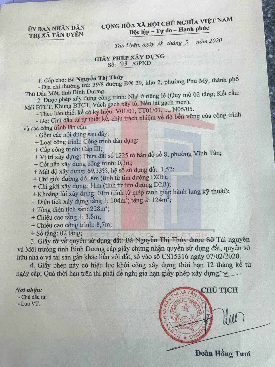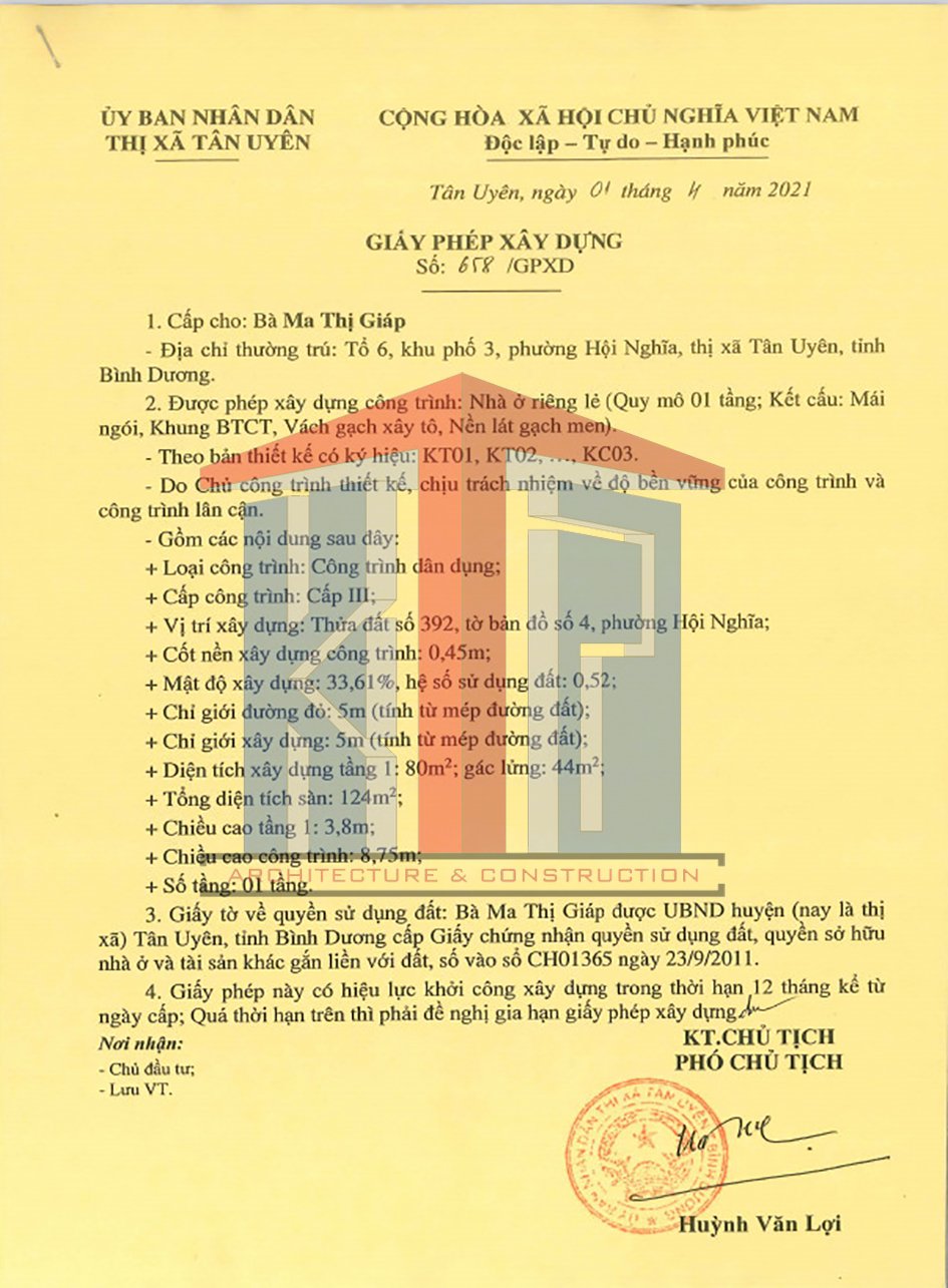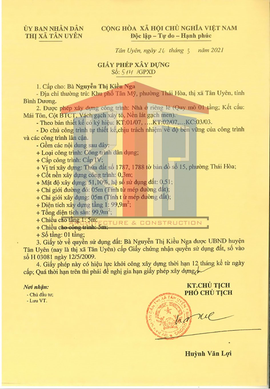 - Xin giấy phép xây dựng Tân Vĩnh Hiệp Tân Uyên Bình Dương.