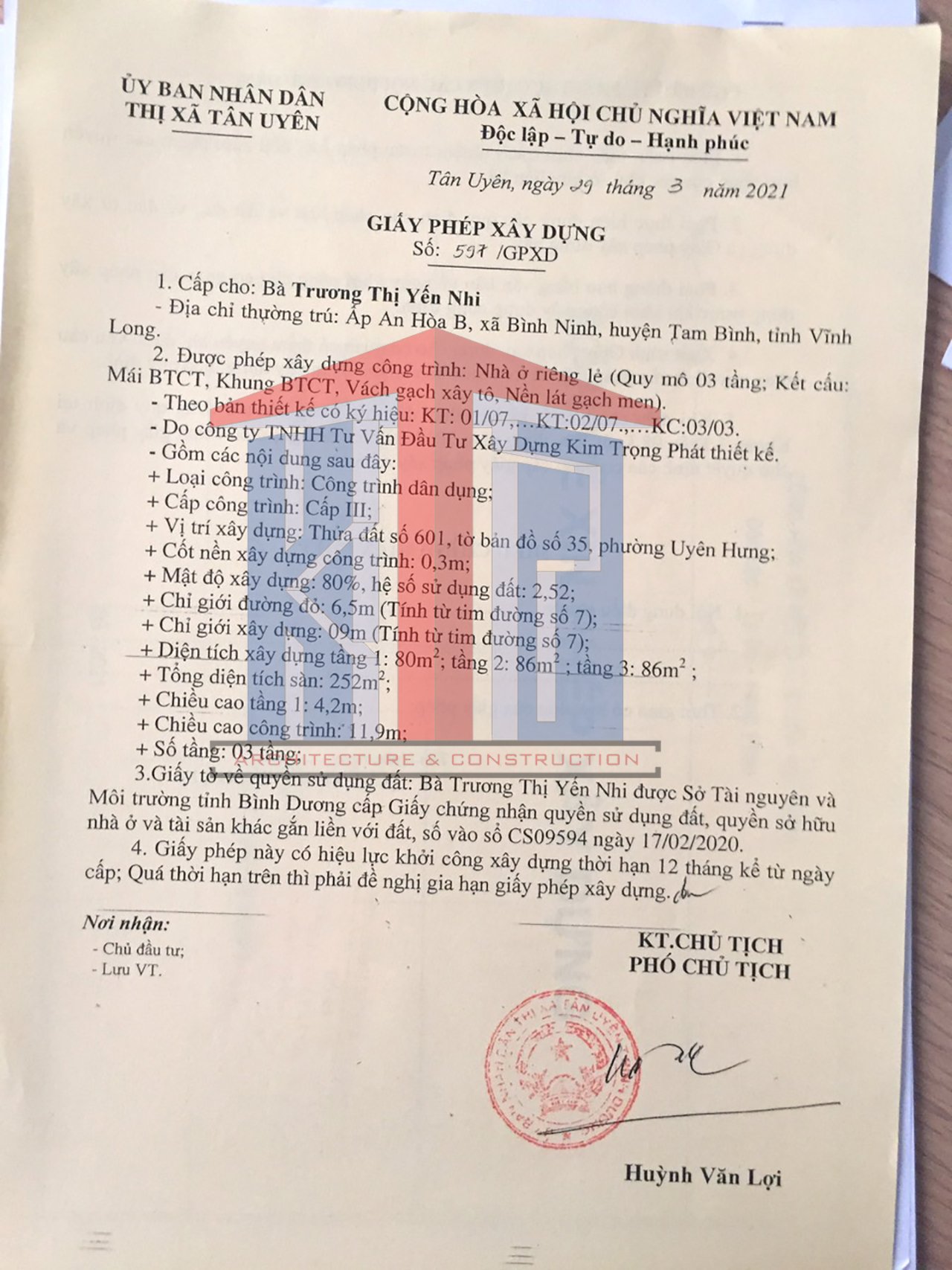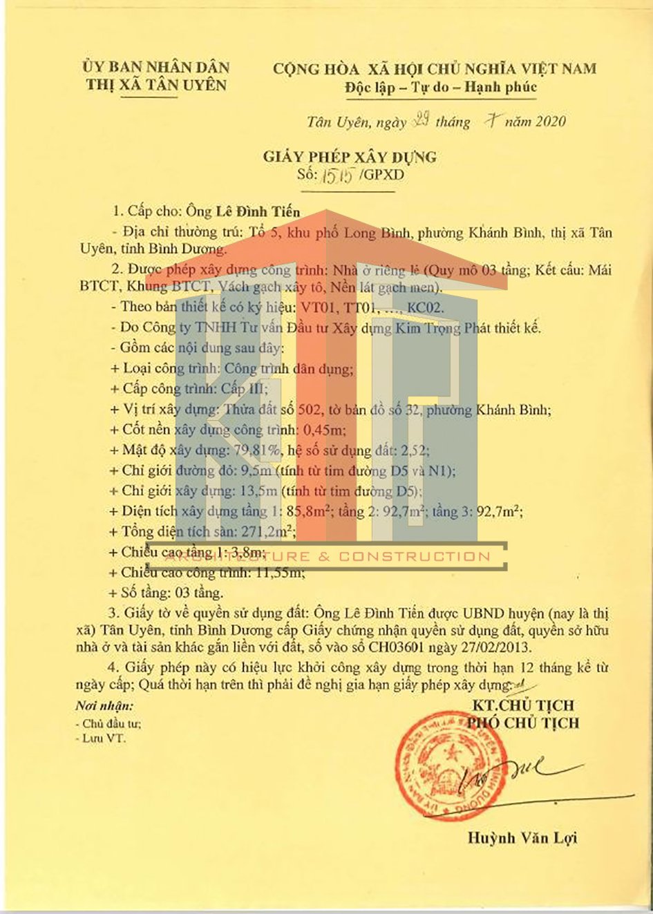 Công Ty Kim Trọng Phát xin giấy phép xây dựng trên toàn địa bàn Tân Uyên, Bình Dương: